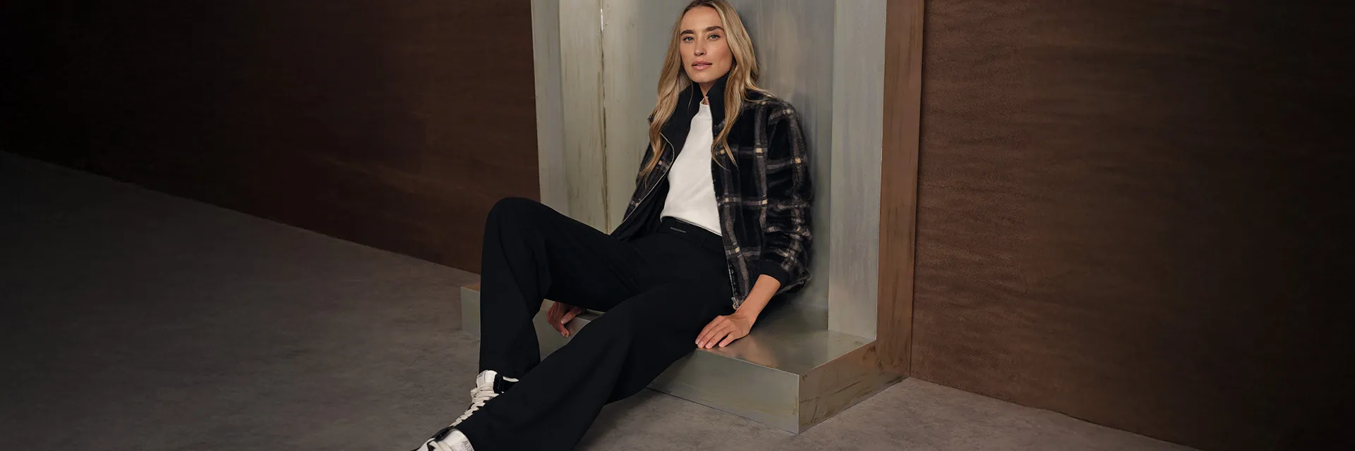 Spodnie z prostymi nogawkami w kratę